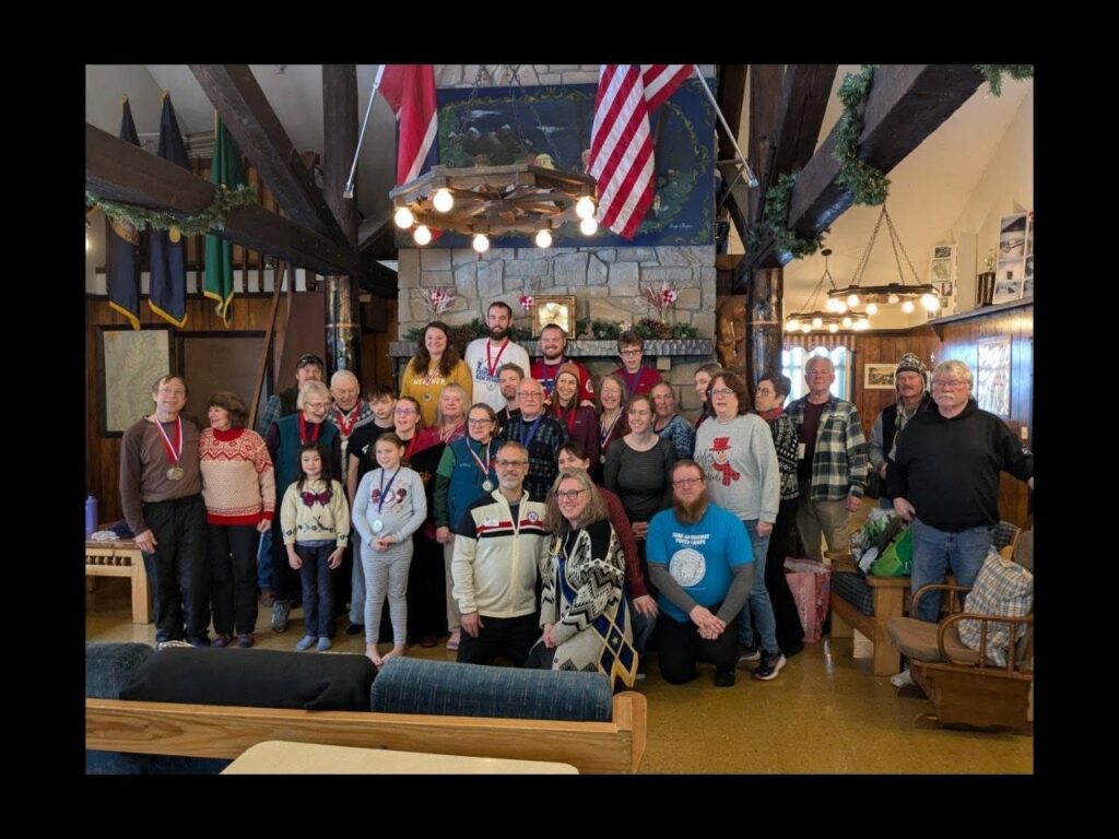 The entire group at 2025 Trollhaugen Ski Races --skiers, race monitors, kitchen -- thanks to Leif Erickson for sponsoring this year.