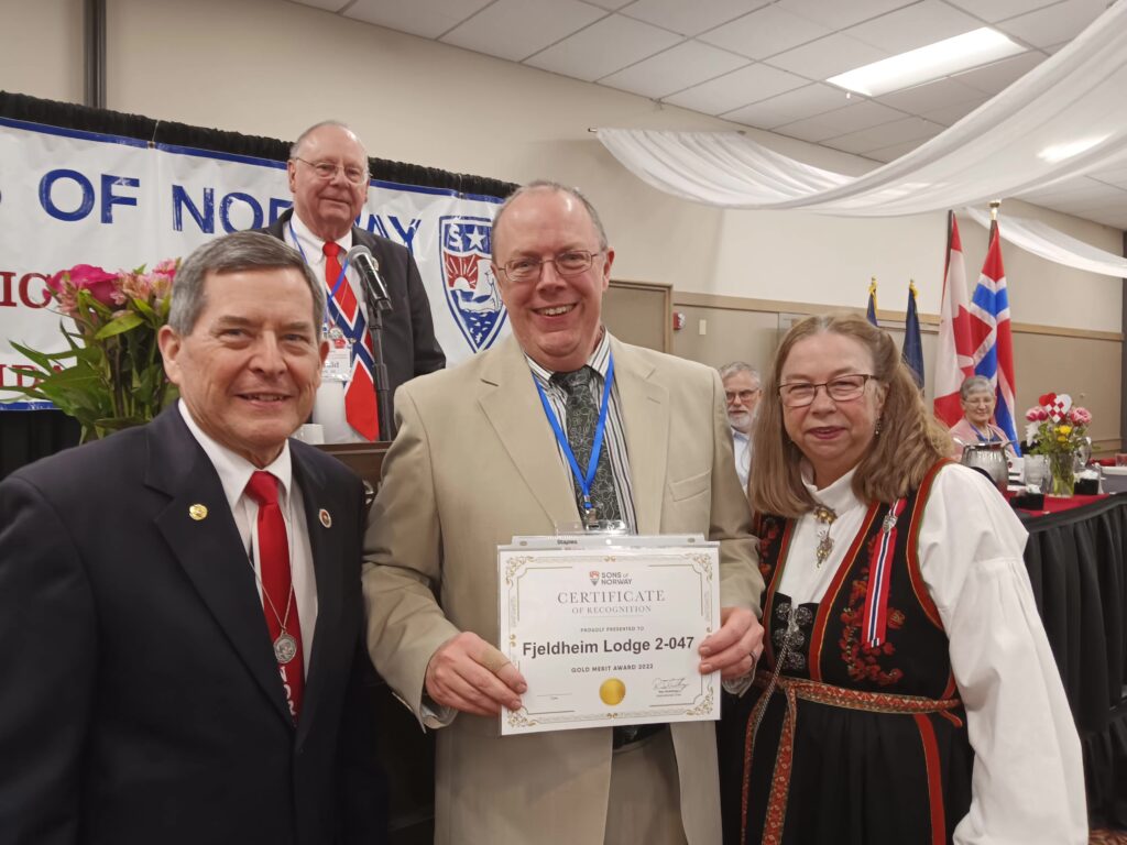 Gold Merit Awards and Family Lodge of the Year for 2022 – 2023 were announced by Jerry Erickson, Past D2 President and presented  by Mark Agerter, Past International Vice Chair, and Chris Hicks, Interim Vice Chair.